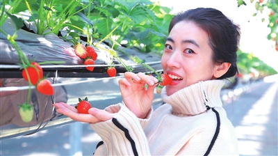 本报11月28日讯 走进棘洪滩街道东毛家庄社区绿沃川草莓大棚,一股草莓的清香就扑鼻而来,由于“超早熟技术”的引进和运用,今冬的头茬草莓已经开吃,市民可以再度邂逅一年一度的“莓”好“食”光,畅享冬日休闲采摘乐趣。