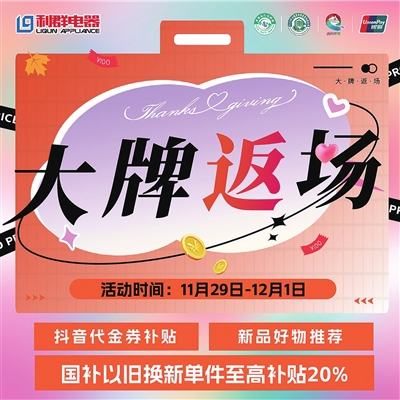 错过了“双11”,可别再错过这为期三天的“大牌返场”活动啦!为你省钱,利群电器不玩“虚”的!