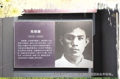 本报11月29日讯 在青岛革命烈士纪念馆内,祖籍山东济南平阴的陈振麓是一颗闪亮的星。他是抗战时期第一任中共青岛市委书记,牺牲时年仅26岁,于1950年被山东省民政部门追认为革命烈士。去年,一家传媒公司拍摄纪录片时,得知陈振麓没有归入烈士陵园。经过多方共同努力,11月29日,记者现场见证了烈士忠魂“归队”,在他牺牲85年后得到告慰。