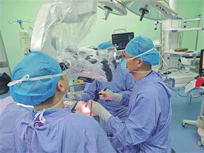 “三叉神经痛虽然痛在脸上,但其根源却在脑部。”去年11月,李女士接受了靳峰团队制定的“左侧三叉神经痛MVD+骨瓣回置术”。这是一项脑深部手术,手术区域复杂且关键,涉及脑干、多组颅神经、大血管及其供应脑干血液的分支血管等重要结构。在手术中,靳峰运用了“锁孔”“微创”技术,在约一元硬币大小的骨窗进行探查和操作。手术过程精细而复杂,但医生们凭借高超的技艺和严谨的态度,成功完成手术。麻醉清醒后的李女士疼痛已经消失,术后第8天李女士治愈出院,重新回到了正常的生活轨道上,解决了“头”等大事。“三叉神经痛虽然可怕,但只要我们积极治疗,就一定能够战胜它。”靳峰说。