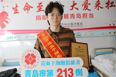 本报11月29日讯 11月29日上午,市民尹清晨在青岛市中心医院完成造血干细胞捐献,成为青岛市第215例非血缘关系造血干细胞捐献者,同时也是本周内,青岛市的第三位造血干细胞捐献者。仅一周,我市就有三位造血干细胞捐献者完成了捐献,这三份“生命的种子”不仅为三名血液病患者带去了重生的希望,更彰显了城市的温暖和大爱。