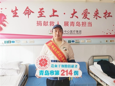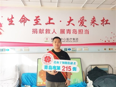 第215例捐献者尹清晨在城阳花木交易市场经营一家商铺,自成年以来,便一直坚持献血,用实际行动传递着爱与希望。截至目前,他累计献血15次,共计6000毫升,获得了青岛市无偿献血荣誉卡。