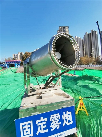 当天上午,记者来到人民路、瑞昌路交界处的三角地,人行道旁的围挡,持续喷射着水雾。围挡内,各类机械正在紧张作业,空余区域则全部被防尘网遮盖着。中铁建工集团第二建设有限公司杭州路小学项目部总工韩天告诉记者,该项目地处老居民区,项目土方开挖量约17万立方米,土方开挖大干阶段恰逢秋冬季大风时段,为有效保护城市的碧海蓝天,项目部依托该公司在扬尘治理方面积累的优势,早在正式开工前就布置了围挡喷淋、渣土车进出冲洗设备等抑尘措施。