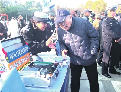 12月1日上午,市北交警联合多部门在凯德广场开展主题宣传活动。交警铁骑邀请群众接受用呼气式酒精测试,检验饮用不同饮品后血液内的乙醇含量,随后佩戴VR眼镜模拟酒醉驾体感,进一步了解拒绝酒驾、一盔一带的重要意义。现场设置“儿童飞行棋”“争先恐后圈圈乐”“一飞即中”“红黄绿协奏曲”等游戏,吸引广大群众特别是小朋友积极参与到各项活动中,熟悉各类交通标志,树立起遵守交通信号灯指示、文明安全出行的意识。