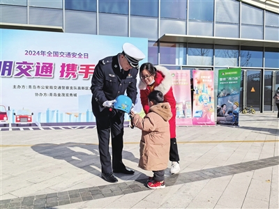 11月26日,青岛高新区交警联合企业在览秀城举办“全国交通安全日”相关活动。交警向企业员工和过往群众介绍了安全出行、紧急避险等方面的交通知识,组织市民积极参与签字承诺,并举办交通安全知识闯关赛,为正确答题的市民赠送精美礼品。