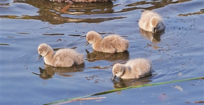 “瞧它们那模样,真是可爱极了!浑身毛茸茸的,就像四个会移动的小绒球。”它们那黑亮的眼睛滴溜溜地转着,满是对新世界的好奇与探索。小天鹅时而歪着脑袋,时而伸着脖子,小翅膀还不时地扑棱两下,那活泼灵动的样子,简直能把人的心都给融化了。它们在水中嬉戏着,一会儿跟在爸爸妈妈的身后,学着它们优雅的划水姿势;一会儿又调皮地你追我赶,溅起一串串小小的水花。那萌萌的神态,让每一个路过的游人都忍不住驻足观看。