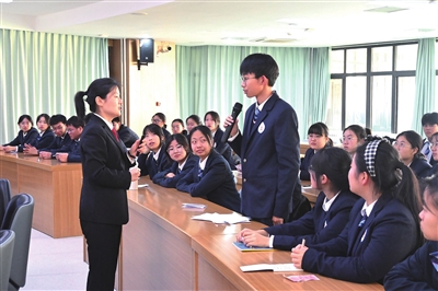 “同学们目前主要的生活环境是家、学校和社会。下面这个案例,大家可以思考一下,如果在学校与同学发生矛盾该如何应对。事情发生在学校自习室内,一名性格内向的女生,与一名男生发生误会,女生误以为男生对她做了侮辱性手势,两个人发生争执,女生推倒男生桌椅,男生扇了女生一个耳光。当场,女生脸部、耳朵红肿。后来,女生精神上出现幻觉,经司法鉴定构成精神三级残疾。” 魏雪飞讲述的案例引发同学们讨论。