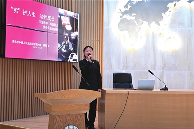 宪法是厚重的,承载着国家的过去、现在和未来;宪法是有温度的,保障着公民的权利、尊严和幸福。从婴儿呱呱坠地,到少年读书成才;从青年干事创业,到中年成家置业……宪法就在每个人的身边,“日用而不觉”,保障我们生活中的点点滴滴,同时也塑造着我们为人处世的行为准则。今年12月4日是第十一个国家宪法日,3日,青岛市中级人民法院少年审判庭法官助理魏雪飞走进青岛二中法治课堂,与二中学子分享宪法如何定义我们的生活,探讨宪法如何陪伴我们的一生,并交流学习法律的心得体会。