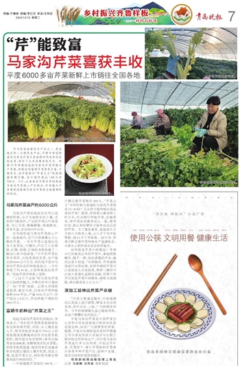 “上过天下过海”的马家沟芹菜以它独特的魅力,为寒冷的冬日增添了一抹“芹香”绿意。记者从李园街道获悉,截至目前,马家沟芹菜种植面积6000多亩,产量3000万公斤,年产值达1.2亿元,带动种植户增收约2400万元。