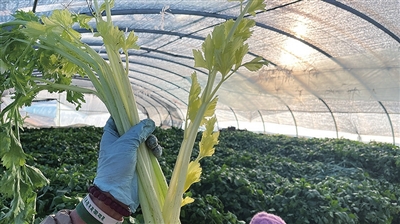 如何筛选芹菜中的精品?李燕从已经挑选出来的芹菜中,拿起两根嫩芽,随手一掰,发出清脆的声音,她向记者介绍道,“在预售前,芹菜通常需进行分级处理,去掉外梗的芹菜可以直接进入市场批发,劈掉二梗的可以装入普通礼盒销往商超,而剩下的芹芯则是芹菜中的精华,被称为玻璃脆,精芯脆更是少之又少。”