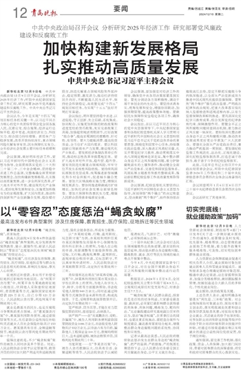 中共中央政治局召开会议 分析研究2025年经济工作 研究部署党风廉政建设和反腐败工作~~~中共中央总书记习近平主持会议
