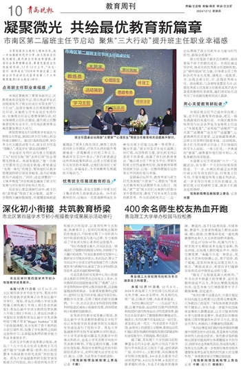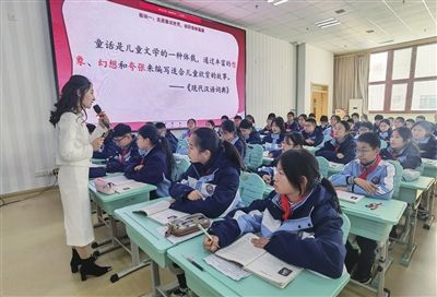 本报12月11日讯 12月10日,市北区第四届学术节语文学科、英语学科初小衔接教学成果展示在青岛弘毅中学举行。现场,青岛长沙路小学语文教师綦玉婷执教七年级上册《皇帝的新装》,青岛弘毅中学语文教师宗雯执教六年级上册《少年闰土》,青岛长沙路小学副校长郑辉和青岛弘毅中学英语教师张宁携手带来“Happy birthday”主题下的衔接课程,充分发挥了骨干教师的示范引领作用,加强了学校教师之间的交流和学习,全面提高教师的教学能力和业务素质水平。