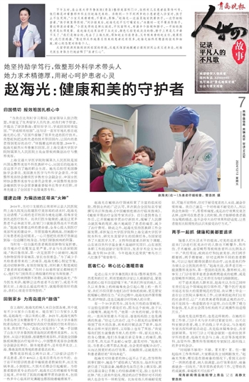 在上海时,赵海光的病人来自全国各地,其中就有不少从家乡山东赶来。能在家门口为家乡人看病,是赵海光一直以来的心愿。2021年,赵海光被作为青岛市卫生健康骨干人才引进到山东大学齐鲁医院青岛院区。“能够把好的医疗资源医疗技术带回山东来,我非常开心,‘此处心安是吾乡’。”她一手创建了山东大学齐鲁医院青岛院区的整形美容科。从无到有、从设计到装修,组建整形美容科,并获批全国静脉疾病微创治疗培训中心、中国整形美容协会继教分会副会长单位。除本地患者外,还有很多北京、上海、香港及欧美等地的患者慕名而来。
