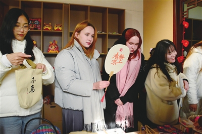 外籍留学生们边走边看边体验,亲手制作艾草香囊,与当地手艺人学习剪纸,在民俗体验中感受风土人情和优秀传统文化。“印度尼西亚有着丰富的手工艺传统,今天的活动让我感受到了中国乡村对手工艺的传承和发展,这里将传统文化现代化、产业化,给了我很大启发。”印度尼西亚籍留学生何维理说。