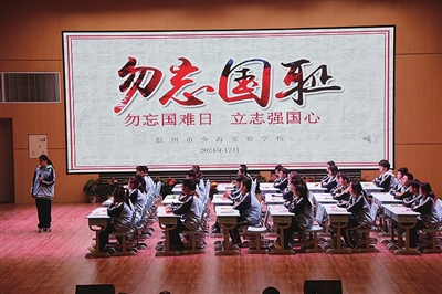 活动当日,是南京大屠杀国家公祭日,胶州市少海实验学校骨干班主任姜旗旗以一堂《勿忘国耻》为题的爱国主义班会公开课展示给与会嘉宾,并请教育专家“诊断”。