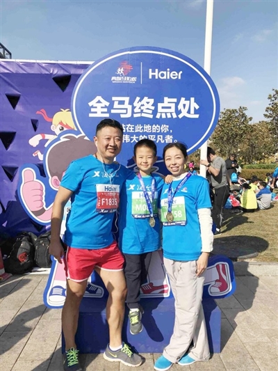 答:父亲是儿子永远的榜样。我曾用自己坚持跑步的故事鼓励儿子:跑马拉松时,总会有个“崩溃期”,一步都跑不动了,只想原地“躺平”,但坚持下去,你会发现身体里涌现新的力量。学习和生活也是如此,熬过难关,会有意想不到的收获。