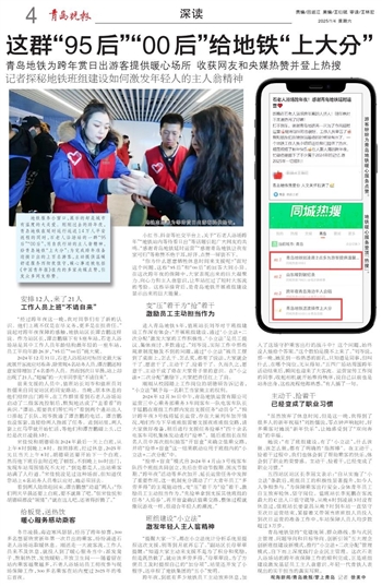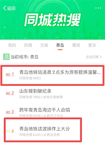 地铁服务小窗口,展示的却是城市有温度的大关爱。刚刚过去的跨年夜,青岛地铁在延时运行运送14万人平安返程的同时,石老人浴场站的一群“95后”“00后”,用自我行动的主人翁精神,给青岛地铁“上大分”:为完成跨年准备迎接日出的上百名游客,主动提供温暖舒适服务而彻夜值守,暖心事迹被包括《中国青年报》在内的多家央媒点赞,引发众多网友称赞。