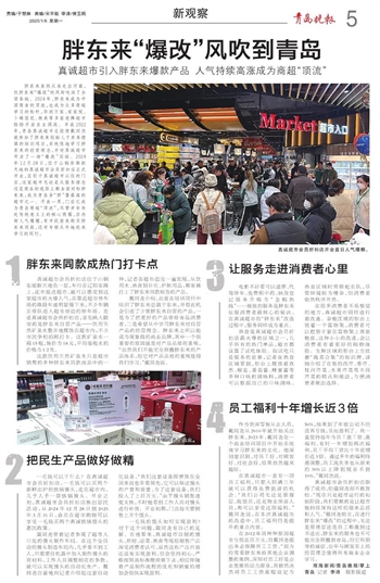戴同尧介绍,此前在培训项目中结识了胖东来总裁于东来,并借此机会引进了少量胖东来自营的产品,一是为了把更好的产品带给青岛消费者,二是希望从中学习胖东来对自营产品的经营理念。胖东来之所以能成为现象级的商业品牌,其中一个很重要的原因就是对产品品质的重视,“虽然我们不能完全照搬胖东来的产品体系,但它对产品品质的重视值得我们学习。”戴同尧说。