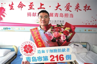 本报1月6日讯 1月6日上午,青岛市造血干细胞捐献者郝权超在青岛市中心医院完成造血干细胞捐献,这份“生命的种子”将给远方的血液病患者带去重生的希望,他也成为青岛市第216例非血缘关系造血干细胞捐献者,也是2025年山东省首例捐献。
