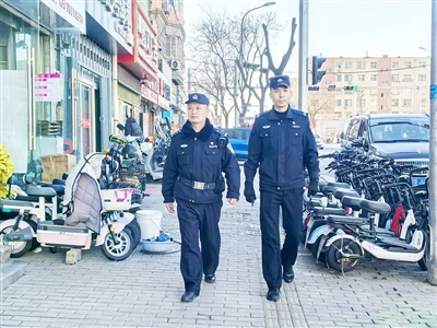 还有20多天,就是一年一度的春节。走在向阳路步行街上,很多门店已经挂起春联和灯笼,渲染着过年的气氛。记者发现,在步行街巡逻的谢勇一直盯着商场角落和楼梯的转角处,似乎在寻找着什么。