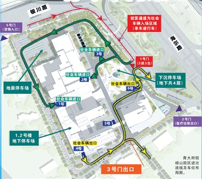 9日,青大附院崂山院区海尔路门(1号门)及地下停车场正式启用。新启用的地下停车场包含下沉广场停车场以及青岛市重点建设项目——金家岭立交地下社会停车场。启用后,崂山院区将拥有停车位3050个,其中院区内停车位为1377个,金家岭立交地下社会停车场停车位为1673个,将大大缓解就医停车难问题。下沉广场停车场与金家岭立交停车场地下空间通过井字形环路连通,实现就医车辆全地下通行及停放,有助于区域静态交通生态的改善。