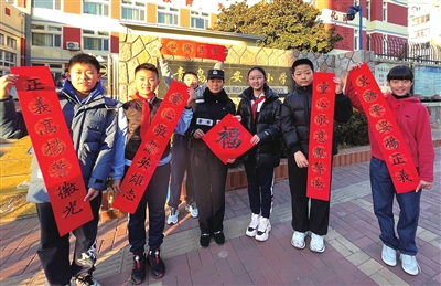1月7日,同安路小学的学生们向护校的浮山新区派出所民警王云霞赠送了警察节礼物。收到学生们亲手书写的对联和“福”字后,王云霞脸上洋溢着温暖的笑容。孩子们用稚嫩的声音向她致谢,祝福她警察节快乐。随后,王云霞与学生们分享了警察工作的日常,鼓励大家要勇敢正直,努力学习,日后造福社会。当天,延安路派出所联合市北交警冠县路中队、上清路社区走进新太阳幼儿园开展相关活动。民警通过现场讲解、互动问答等方式,围绕幼儿防拐骗、烟花爆竹禁燃禁放、拨打110报警等内容,为孩子们普及了相关知识。