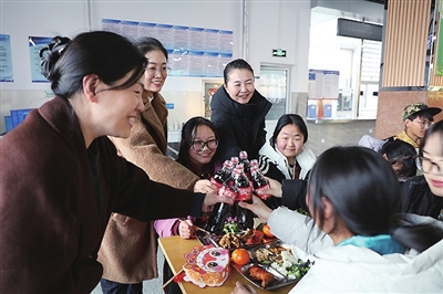 西藏班学生在老师的指导下扎彩灯体验非遗传统技艺,学校还对表现优异的学生进行了表彰。文艺汇演上,90名西藏班学生深情朗诵《中国声音》,用奔放的舞蹈、热情的歌曲表达对祖国的热爱、祝福和对学校的感激。文艺汇演结束后,师生走进食堂共享年夜饭,学校为学生准备了水饺和丰盛晚餐,让异地过年的西藏班学生感受到亲人般的关怀,整个校园洋溢着欢乐的节日氛围。