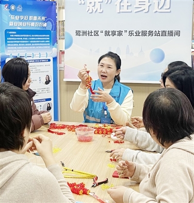 鹭洲社区为新设社区,居民较为年轻,全职宝妈群体较多,就业需求旺盛,为此,该社区推出“宝妈就业赋能计划”,而王颖则成为了核心力量。每周四下午,她的花艺串珠课堂准时开课,深受宝妈欢迎。