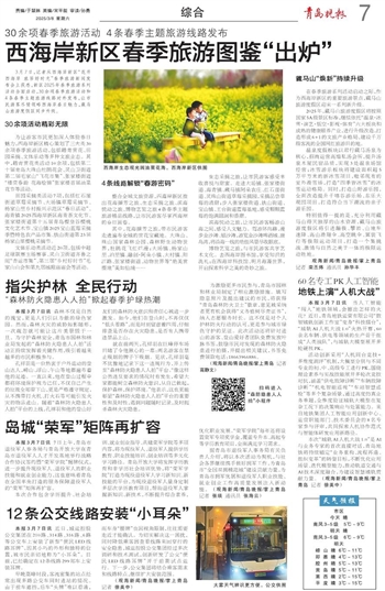 3月7日,记者从西海岸新区“花开西海岸 旅居好时光”春季旅游新闻发布会上获悉,新区2025年春季旅游系列活动全面启动,30余项春季旅游活动和4条春季主题旅游线路对外发布,让市民游客尽情领略西海岸春日魅力,藏马山旅游度假区同步升级。