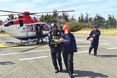 当天上午,新加坡籍“远千海”轮出境过程中,一名中国籍船员手指被严重割伤,深可见骨,急需入境就医。船方联系代理公司向边检机关报告,请求入境救治。董家口边检站接到求助电话后,立即开通“紧急通道”,依托海上联合救援机制,协调相关部门派出直升机参与救援。