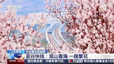 本报4月6日讯 在青岛,有一条穿梭于山海之间的地铁,每年的三四月份,沿途的樱桃花、樱花、杏花、桃花次第开放,坐着地铁去赏花成为了不少市民游客的出游选择。近日,这条蓝谷快线被央视新闻直播间栏目点赞。