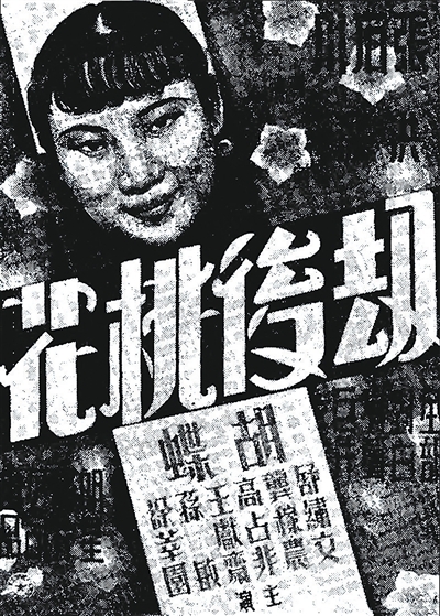 1936年2月2日,《劫后桃花》在青岛中山路山东大戏院首映。“楼下一律四角;楼上前排七角,后排五角”。“不看本片枉为青岛之居民!”当日,《青岛时报》《青岛民报》刊布山东大戏院广告,称《劫后桃花》是“以青岛史实为背景的伟构”,乃“前本市山东大学教授洪深先生编剧,集数十年之青岛经验完成本剧”。