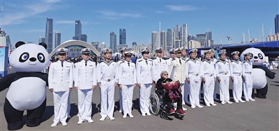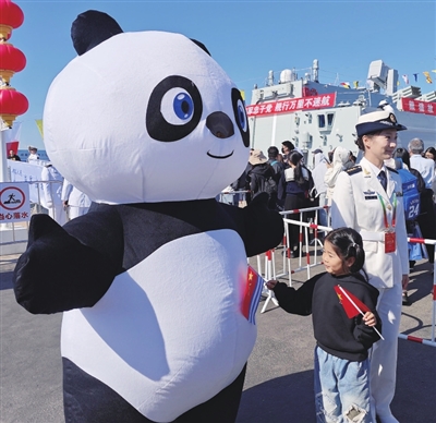 熊猫“爬”上军舰添彩