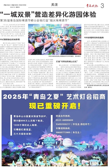 据介绍,崂山会场位于世纪广场中广场、南广场,以“一城双景”为引领,营造兼具中式雅韵与时尚欧情的差异化游园体验。本届啤酒节主要突出“国际范、时尚化、体验感、烟火气”四个特点。在国际范方面,汇聚11个国家18个品牌的93款啤酒,为游客开启舌尖上的环球啤酒品鉴之旅,精心推出国际友人主题日、国际游客专属优惠套餐和旅游线路等内容,并配备中、英、日、韩四语标识及翻译团队,印制多国语言《崂山区文旅指南》《“乐游崂山”十大旅游线路》,优化入境游客游玩体验。在时尚化方面,崂山会场推出“潮玩街区”,设置VR体验区等智慧体验内容,开展国家级跳绳比赛、青岛市社区运动会、曲艺演出等丰富多彩的文体活动,并组织国内外NPC巡游,打造“从山海秘境到市井烟火”的文化长廊。聚焦崂山商务特色,用心打造15间商务单间,组织人才、金融、科技、怀旧、文旅等多元主题日及企业、媒体专场活动,做好政府“搭台”、企业“唱戏”文章。