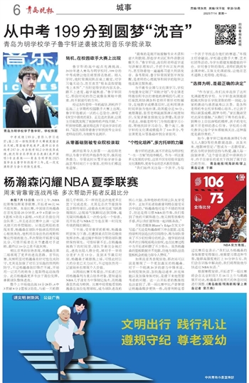 本报7月13日讯 13日上午,NBA拉斯维加斯夏季联赛,开拓者86比96不敌灰熊。本场比赛,中国球员杨瀚森在首发登场25分钟里,8中4贡献10分5篮板3助攻1盖帽,+5的正负值位列全队第二,并且还在比赛中上演一记举火烧天的单臂隔扣。从他近两场的表现来看,杨瀚森在球队中扮演攻传防核心枢纽角色,他利用自身出色的视野和策应传球的能力,多次帮助开拓者反超比分,可惜开拓者在末节遭遇对手逆转,最终以10分之差不敌灰熊。