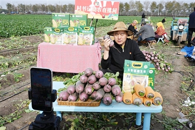 就在田间地头,宋吉阳变身为网络主播进行“带货”,让“土货”变“俏货”,助力农民销售萝卜。一部手机、一台支架、一个小板凳,初冬的暖阳照在脸上,他一字一顿地介绍着手中的农产品。“我们这里沙地种的‘冰激凌’萝卜,品质是看得到的,大家看一下。”说着,只听一声“咔嚓”,宋吉阳就掰开了手中的萝卜,给网友们展示萝卜芯,还不时咬上两口,光听声音就能感受到萝卜的清脆可口。田间地头的直播间条件虽显简陋,但是网上直播间却很热闹,销量也非常可观。通过“一根网线”,让这份地头的鲜甜直达全国千家万户。这种“沾泥土带露水”式直播,仅直播一小时,就接了千单,销售萝卜五千余斤。