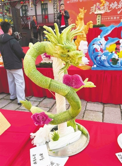 本报2月25日讯 25日,正月初九,作为2026年青岛萝卜·元宵·糖球会的核心活动之一,凯撒杯·2026青岛萝卜雕刻大赛在市北区大鲍岛文化休闲街区广兴里举行。本届大赛由市北区商务局、市北区文化和旅游局、市北区历史城区保护发展中心、市北区总工会等单位指导,青岛市厨艺文化研究会等联合主办,以“非遗焕彩贺新春”为主题,汇聚国内雕刻领域的能工巧匠,为新春佳节增添了浓郁的文化氛围。