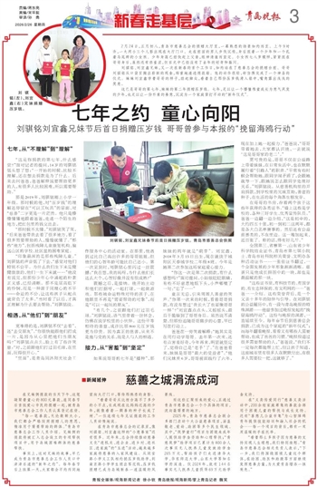 ~~~刘骐铭刘宜鑫兄妹节后首日捐赠压岁钱 哥哥曾参与本报的“挽留海鸥行动”
