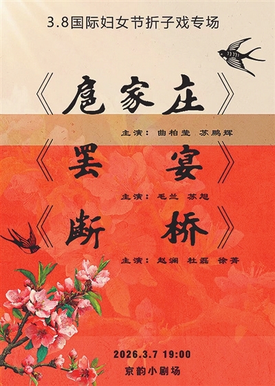 同日19时,三八节京剧特别演出将在青岛京韵小剧场启幕。青岛市京剧院将上演《扈家庄》《罢宴》《断桥》三出经典折子戏,以国粹之美致敬女性力量。