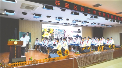 “诗歌,究竟给我们的生活带来了什么?它带来了片刻的停顿,让我们在忙碌中听见自己;它带来了情感的出口,让欢喜与忧伤都有了名字;它带来了想象的翅膀,让平凡的日子也能闪闪发光。更重要的是,诗歌让我们重新学会看见——看见一朵花的开放,看见一个孩子的成长,看见教育最柔软、也最深沉的模样。”诗意的开场之后,青岛第四实验初级中学学生、市北区韩鑫名师工作室老师、青岛开平路小学学生带来了三段精彩的诗朗诵。少年之声,赤诚如光;师者之音,沉稳如山。师生用吟诵与诗共鸣,表达着热爱与深情。
