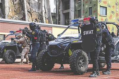 本报3月26日讯 飞车拦截、实弹射击……3月24日,青岛市公安局特警支队指挥保障大队联合武警青岛支队、城阳分局特警大队,在李沧区一处训练基地内举行联合演训,正式启动2026年度反恐处突专业集训。