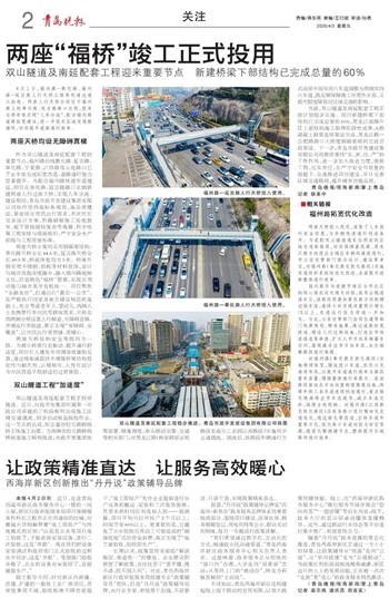 当前,双山隧道及南延配套工程正按计划稳步实施。项目新建桥梁下部结构已完成总量的60%,黑龙江南路片区上部结构施工取得阶段性成果,6跨混凝土箱梁连续架设完成,黑龙江路—合肥路路口大跨度钢箱梁顺利完成首段架设。下一步,青岛市政开发建设集有限公司将继续秉持“实、新、快、严”的工作作风,进一步加大推进力度,倒排工期、压实责任,在严守安全与质量的前提下,全速推进项目建设,早日完善区域交通路网,提升城市功能品质。