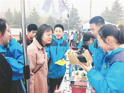 班级展位上,2025级3班“科技筑梦,青春启航”的主题横幅格外醒目。航天火箭模型、自制电子装置等一件件凝聚着智慧与汗水的科创作品整齐陈列,吸引众多师生驻足观赏。同学们化身“小小讲解员”,自信大方地讲解作品设计原理与创新亮点,现场演示功能操作,将抽象的科技知识转化为生动易懂的内容,赢得阵阵赞叹。