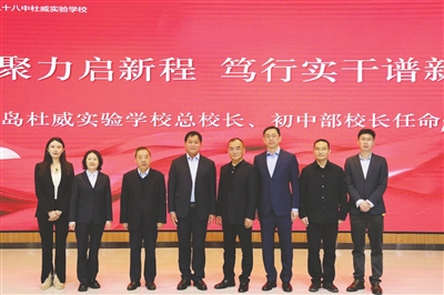 本报4月9日讯 9日下午,青岛杜威教育集团举行总校长、初中部校长聘任仪式。齐鲁名校长、青岛五十八中原校长袁国彬出任总校长,滨洲渤海中学原总校长王永刚担任初中部校长。此次人事聘任,是集团优化管理架构、夯实办学根基的重要布局,也是青岛市民办教育深化内涵发展、打造优质教育品牌的有力实践,为学校迈向“岛城著名、省内一流、全国知名”的发展目标注入核心动能。