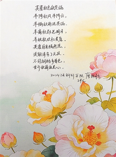 | ◀指导老师张舒点评:本诗清雅婉约、句式精巧,仿易安之清丽,拟陶潜之恬淡。咏芙蓉托素心,立意高洁;忆秋景而共情,真挚动人。从诗中可以感受到小作者对古典文学的热爱,对梦想与内心的坚守。 |