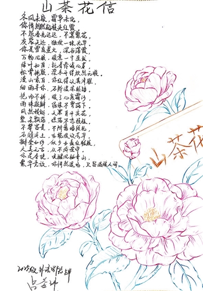 | ◀指导老师任淑燕点评:这首诗以花喻人,笔触细腻。写山茶凌寒独开、不慕繁华,既见其艳而不娇的姿态,更赞其坦荡倔强的品格。语言柔美,意象干净,结尾悄然退场更显淡泊从容,是一首形神兼备、情韵悠长的佳作。 |