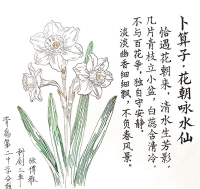 | ▲指导老师姜桂敏点评:这首词语言清新自然,画面感十足。上阕绘形,下阕写心,不与百花争艳,静守幽香,恰合水仙气质。全词节奏舒缓、情致温婉,紧扣花朝时节,既咏物又含情,读来温润雅致,尽显少女的细腻心思与审美。 |