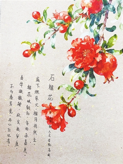 | ▶指导老师刘玲玲点评:这首诗以石榴花为意象,以“燃朱火”绘花之明艳,用“多籽承嘉愿”寄寓美好祝福,既写出石榴花盛放之态,又暗含不与群芳争艳的风骨。全诗由春及秋、由形入神,语言凝练且意蕴悠长,格律工整,意境清雅,是一首兼具画面感与情志的佳作。 |