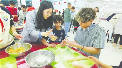 傍晚的食堂化作跨文化厨房。长江学子示范揉面擀皮,美国学生则创造出星星形、元宝形的创意饺子。两校学生并肩而坐,分享劳动成果。“我吃过速冻饺子,但亲手包的完全不同——里面裹着故事和笑声。”美方学生卢克·理查德·埃玛洛(Luke Richard Aimaro)的话引来一片共鸣。