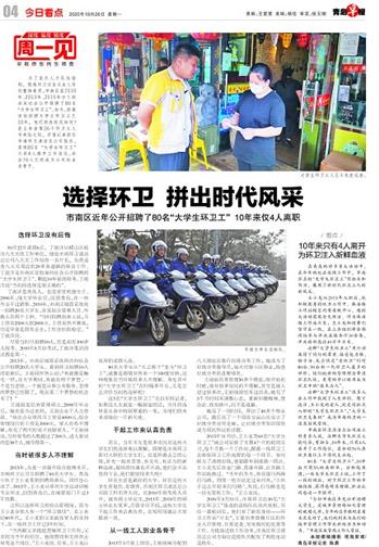 为了优化人才队伍结构,提高环卫行业从业人员的整体素质,市南区在2010年、2013年、2015年分三批共向社会公开招聘了80名“大学生环卫工”。如今,距离首批招聘大学生环卫工已10年,他们现在状况如何?在山东省第26个环卫工人节来临之际,早报记者前往市南环卫清洁总公司探访,发现80名 “大学生环卫工”只有4人离开工作岗位,其余76人已经成为公司的业务骨干。